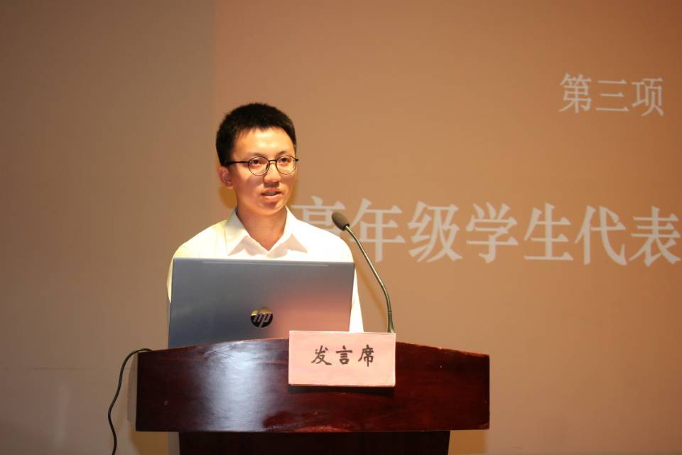 院长致辞后,18级本科生张晋博同学、20级本科生李梦梦同学分别作为高年级学生代表和新生代表进行发言。张晋博同学用“适应”、“惜时”、“规划”三个关键词,表明了自己对大学生活的看法,寄托自己对学弟学妹们的美好祝愿。李梦梦同学则表示要尽快适应大学的新环境、新生活,树立正确的世界观、人生观、价值观,自觉抵制不良诱惑,为社会传递正能量,做一个对社会、对他人有用的人。
