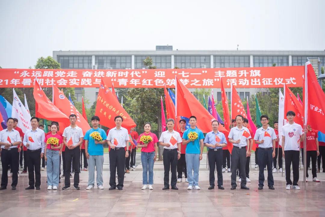 6月28日清晨,“永远跟党走,奋进新时代”迎“七一”主题升旗仪式暨2021年暑期社会实践与“青年红色筑梦之旅”活动出征仪式在南湖校区国旗广场举行。副校长曹德欣,校党委副书记蔡世华,学校相关部门与承办啪啪啦