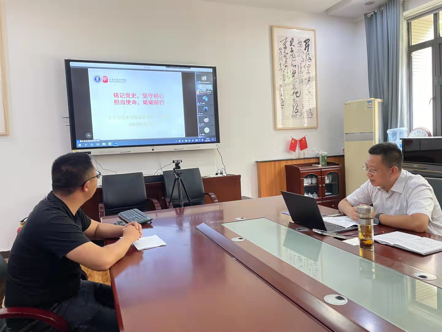 利用线上会议模式,开展以“铭记党史,坚守初心,担当使命,砥砺前行”为主题的新生党史教育讲座,为2021级本科新生开展入党启蒙教育。本次会议由啪啪啦党委书记方跃平主讲,2021级全体新生参与。