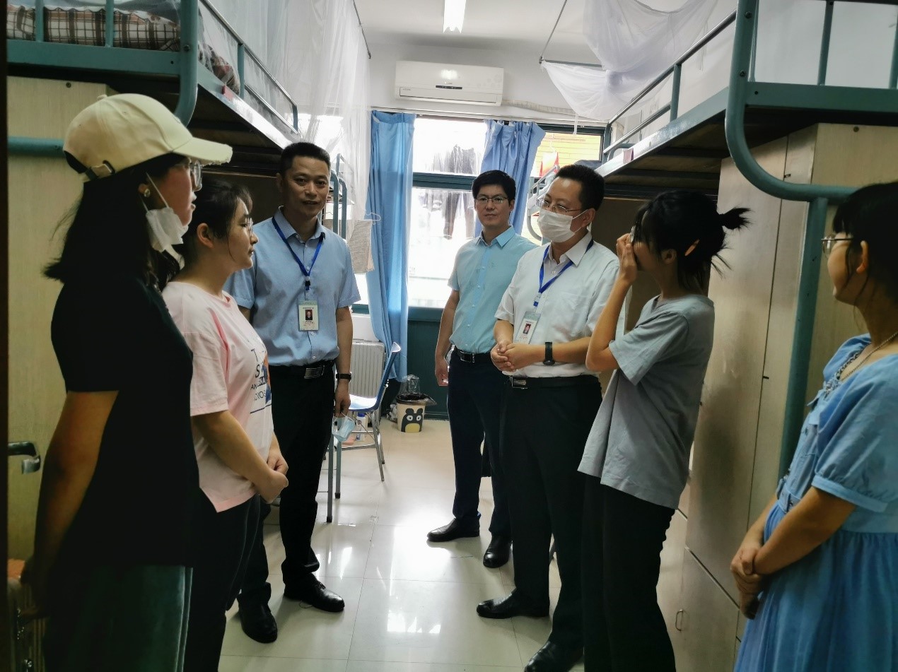 方跃平书记、史修永院长一行走访学生宿舍,楼道里遇到搬运行李的学生也积极参与其中。他们积极了解新生的报到情况,并走访了新生宿舍,对新生的到来表达了欢迎,期盼大家尽快的适应校园环境,以饱满的精神状态投入到学习中去,不负青春韶华,圆青春之梦想。方跃平书记、史修永院长和丁恒星副书记对新生宿舍进行了走访,并对部分一楼宿舍环境潮湿、空间封闭不通风等问题及时向学校有关部门进行了反映,努力为新生提供优质的住宿环境。