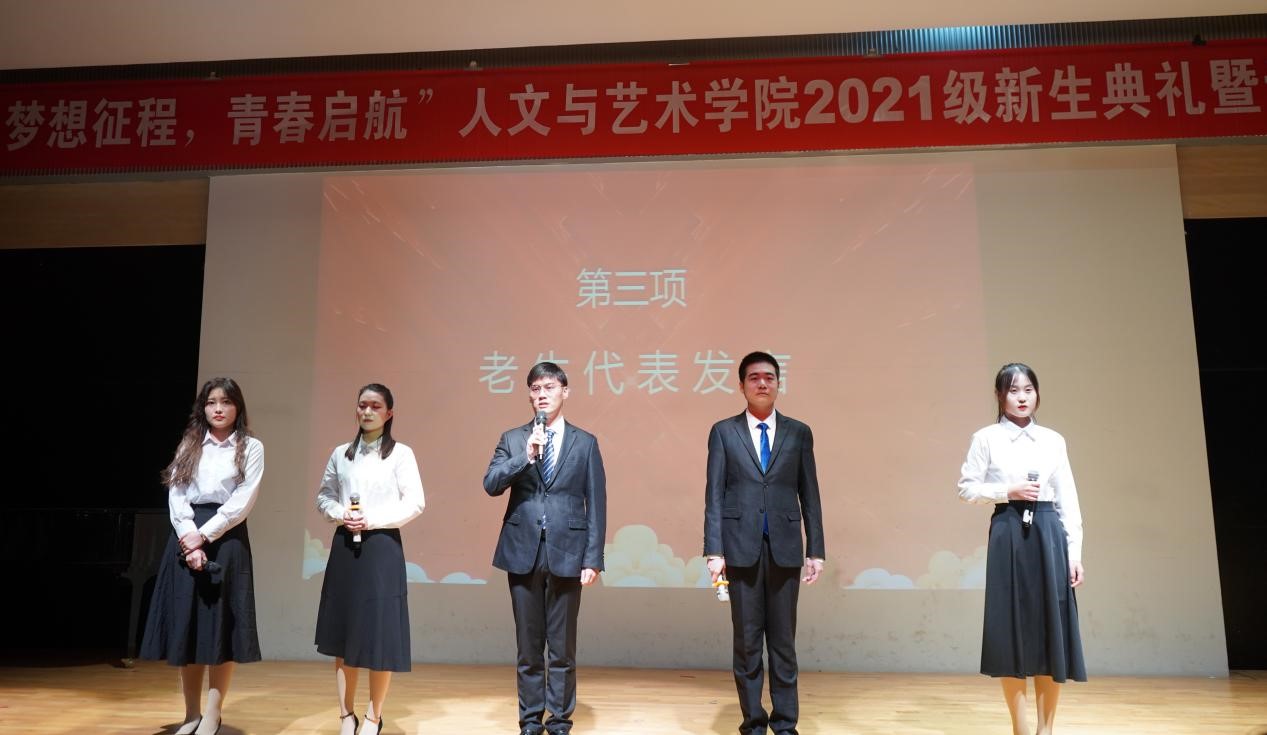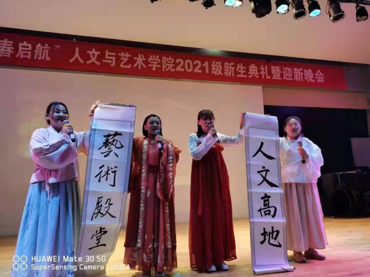 于艺术报告厅隆重举行2021级新生开学典礼暨迎新晚会。啪啪啦