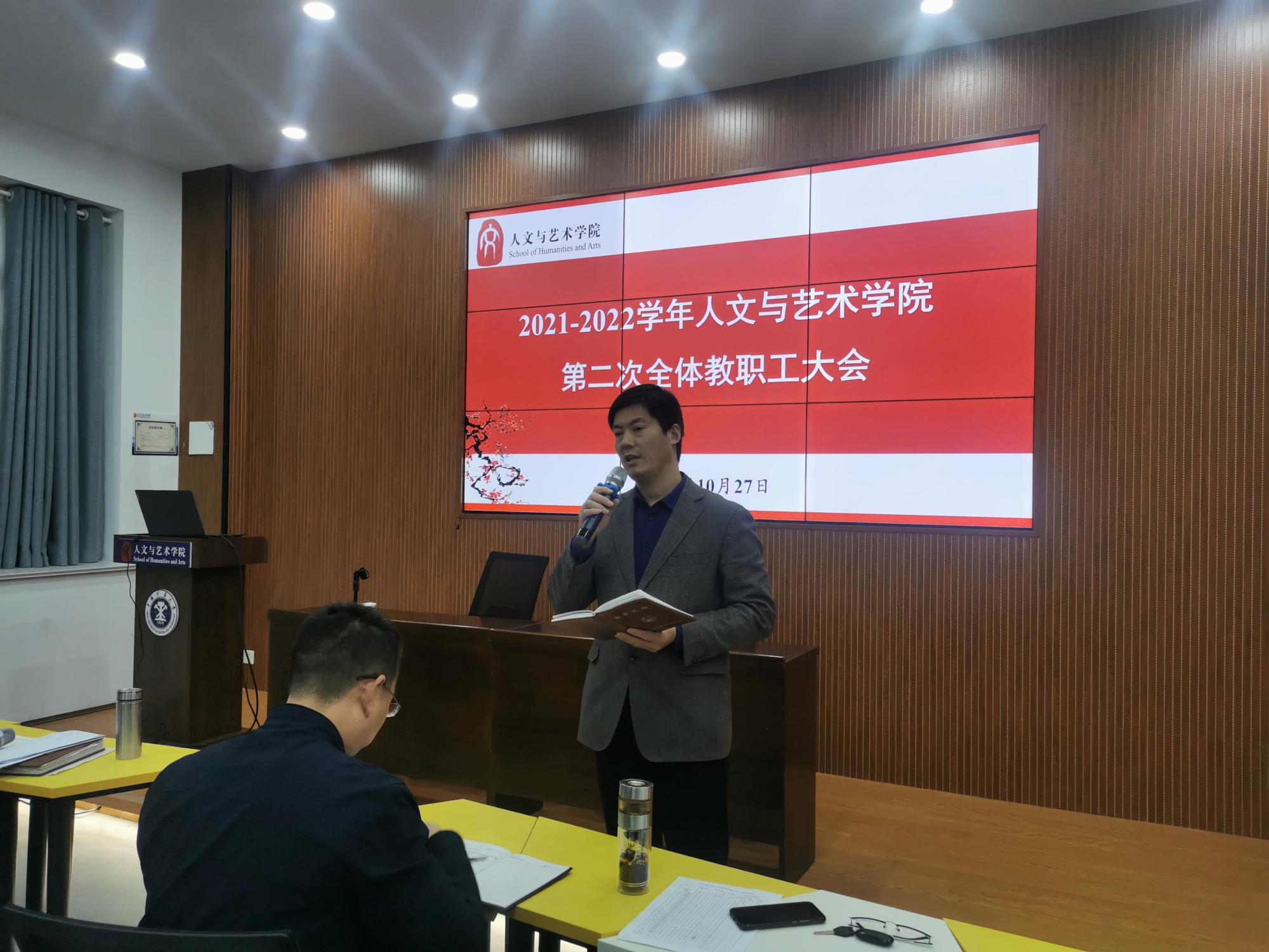 于文科楼A111召开本学期第二次全体教职工大会。啪啪啦