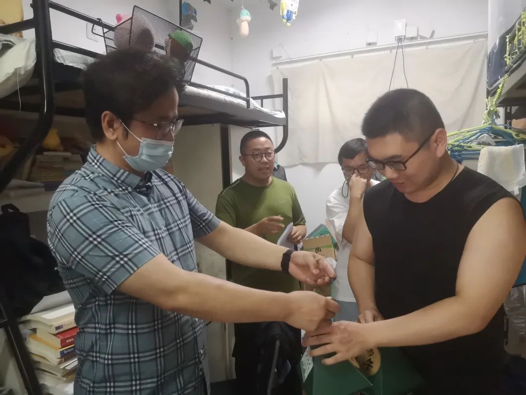 研工办、学工办老师一起到学生宿舍为毕业生送上祝福。
