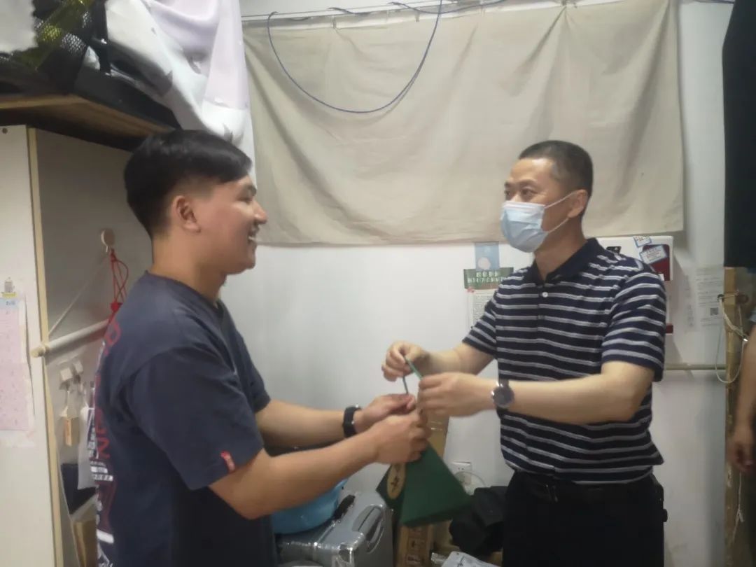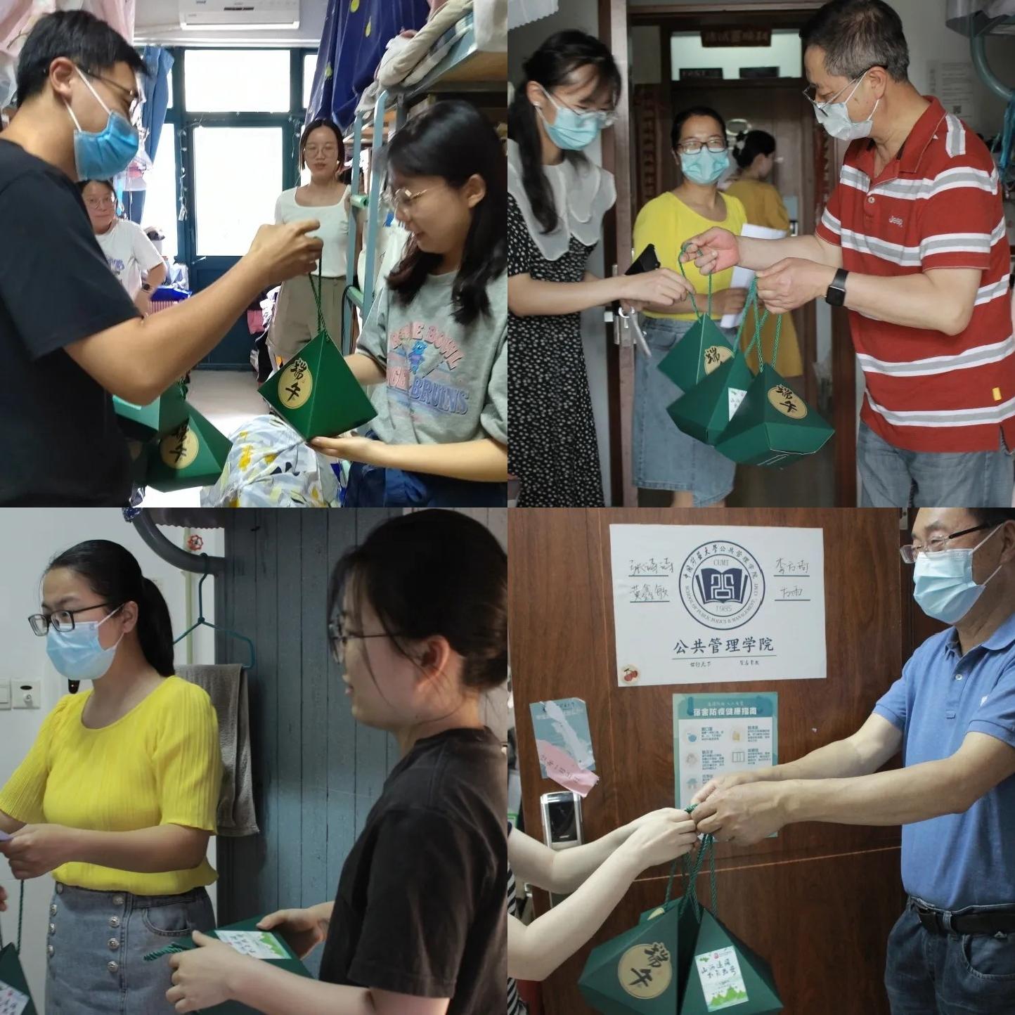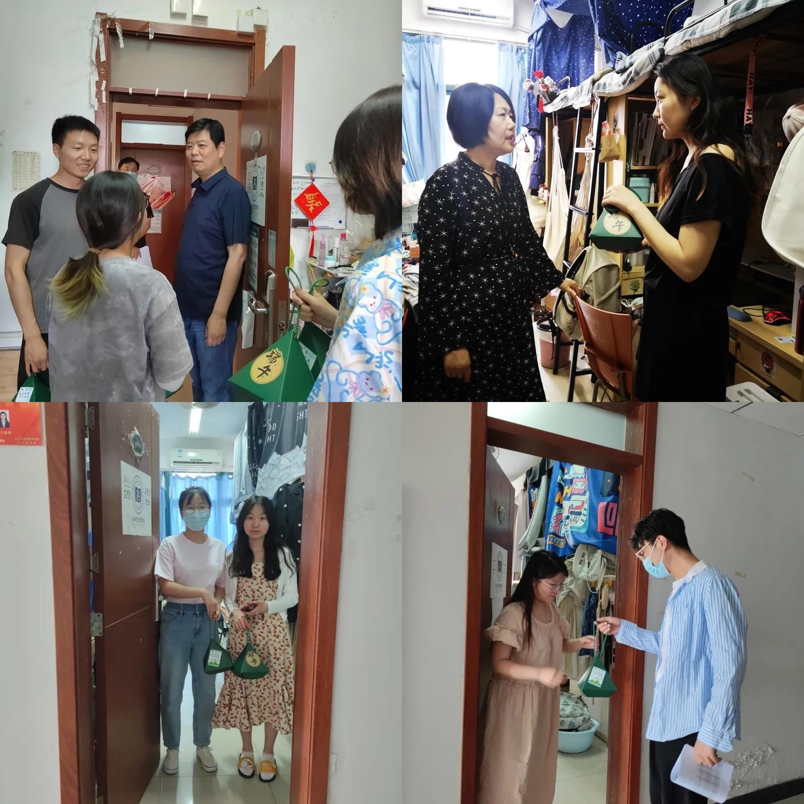 分装之后,参与活动的老师和学生干部一起走进毕业生宿舍,将礼盒与祝福一起送到学生手中。走访中,老师们详细了解毕业生就业进展,深入交流未来职业发展愿景,叮嘱做好疫情防护、平安顺利离校返乡等。院长史修永表示,母校是毕业生永远的精神家园和坚强后盾,啪啪啦