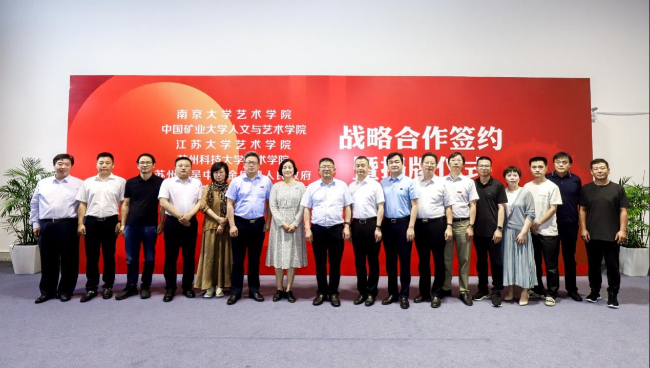 、苏州市吴中区金庭镇人民政府、苏州麒峰文化发展集团有限公司共同签订“政府、学校、企业三方战略合作框架协议”。“政校企”三方将以艺术为笔,加快绘就地景天成情感共鸣的“艺术岛”。