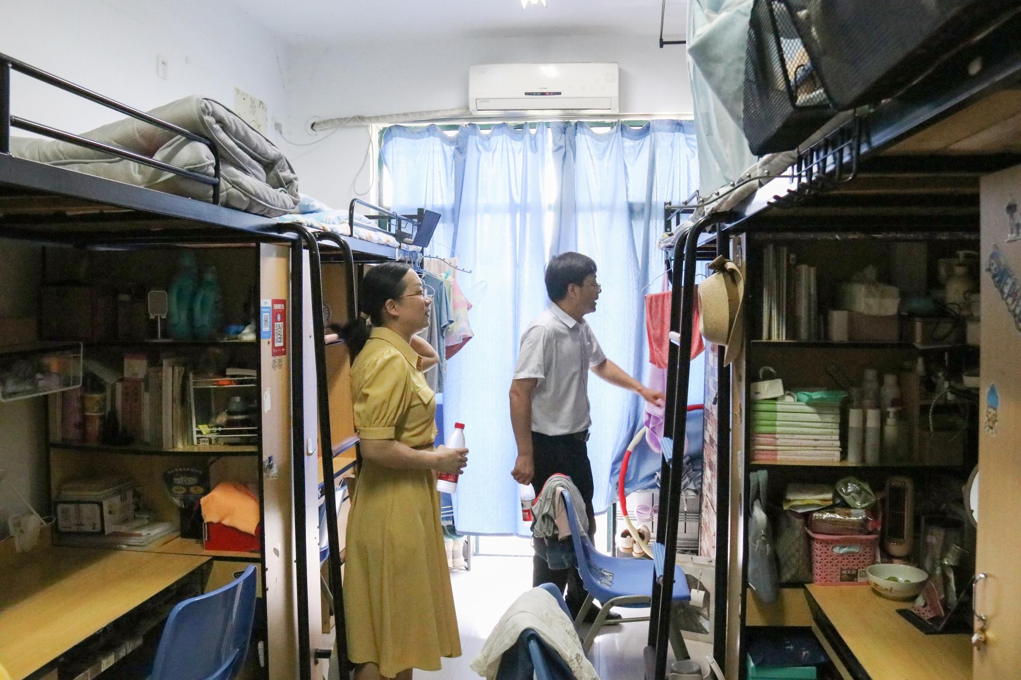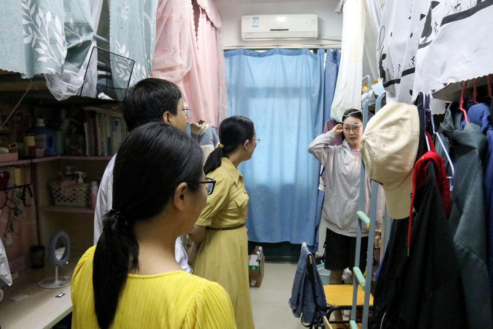 在本次走访寝室的过程中,老师们主要针对宿舍的安全和卫生状况,对啪啪啦学生所在的7栋楼共28个宿舍开展全面检查。老师们与学生亲切交谈,了解他们留校期间的学习和生活情况,叮嘱他们保持良好的作息规律,呼吁大家积极营造“安、乐、优、雅”的宿舍环境。检查发现,宿舍卫生普遍干净整洁,但存在通风不畅、插线板未及时断电等问题。老师们强调,在寝室要安全用电,要提高自身的安全防患意识,切不可粗心大意。
