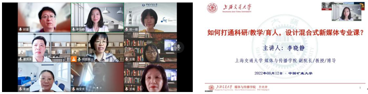 整体资源,注重求真务实;(二)明确基本教育教学观念是解决教学实际问题的先决条件。1.高等教育的目标是什么?李晓静教授认为,高等教育培养的是创新人才,而高等专门人才的培养需要建立在老师具备专业科研能力的基础上。2.高校教师同时做科研、教学、人才培养工作,三者的关系是什么?李晓静教授非常形象的运用一棵树来做类比。科研是树根,有科研才有内容和学生讲;教学是树干,有一个成长的过程,科研转化成有技巧的教学是一个非常复杂的过程;育人是树冠,是我们最终的目标,是做好科研和教学的基础工作后自然而然生成的结果。不少学校前些年本末倒置,把科研当做目标,忽视了人才培养工作,这在最近几年的学科评估中已经回归本位。(三)结合自己主持的国家一流本科课程《新媒体与社会》,细致讲解了如何打通科研、教学、育人关系,如何用自己的科研反哺教学,实现育人的目标。她谈到,新媒体课程教学当下有三个难点:一是教学资源和新媒体内容不匹配理论陈旧、可参考内容有限;二是课程思政提出更高要求,尤其传播学多是西方理论、有些时候并不匹配中国现实,如何进行本土研究、引导学生关心祖国热爱祖国;三是教学手段单一,还是传统教学方法。针对这三个难点,李晓静教授给出了自己的解决方案。一是教学目标设计上导向是要培养学生,是要解决中国本土问题。引导学生做本土调研。科研融入到教学,从而产出育人。比如在课程中的“新媒体采用与扩散”板块,学生通过支教发现城乡学生新媒体使用差距,在老师指导下进一步做规范调查,带领学生从课堂到田野进行科研实践训练,成果得到学界重视,获得上海市大学生“挑战杯”一等奖,又是重要案例反哺教学,在这一过程中实现育人目标。二是教学内容上进行模块化设计,融入跨学科内容。比如在新“媒体与经济板块”指导学生做老字号品牌的数据挖掘,参加全国数据新闻大赛,获得三等奖。三是教学方法上尝试混合式教学,结合交大自主平台辅助教学,课堂使用多种教学手段,同时成立“望媒止惑”工作室,建设多平台融媒体教学资源的同时也面向社会提高青少年媒介素养。在这一系列过程中提升了学生兴趣、培养了学生能力,贯通了科研、教学、育人。