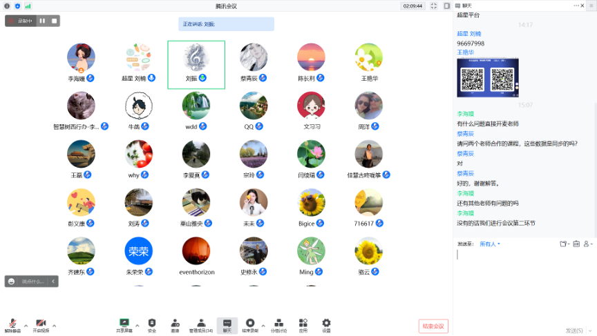 会议伊始,刘振副院长介绍了超星集团高级培训师刘楠。刘楠老师对超星在线教学平台的智慧教学工具应用和在线课程建设及混合式教学进行详细介绍,并示范如何智慧运用超星在线教学平台进行授课,与老师进行签到、问卷调查、讨论等互动。在最后的提问与答疑环节,刘老师与蔡青辰老师积极互动,解答了蔡老师关于教师团队课程负责人的相关问题。