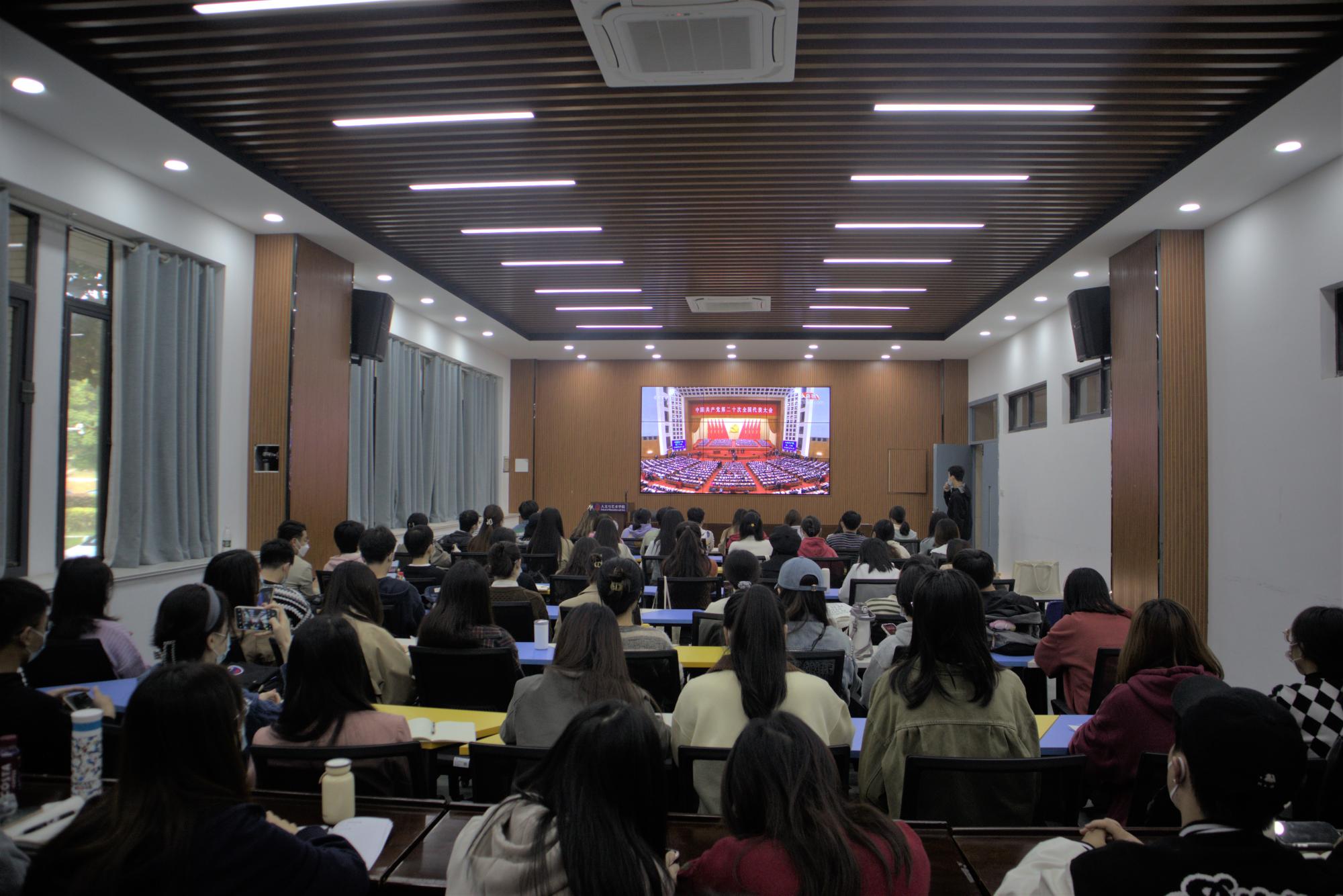 党委中心组、党员学生、团学青年等140余人分别在文科楼和竹苑党工委收看实况直播。啪啪啦