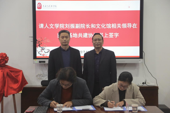 副院长刘振和徐州市文化馆副馆长周艳在实习基地统建协议书上签字