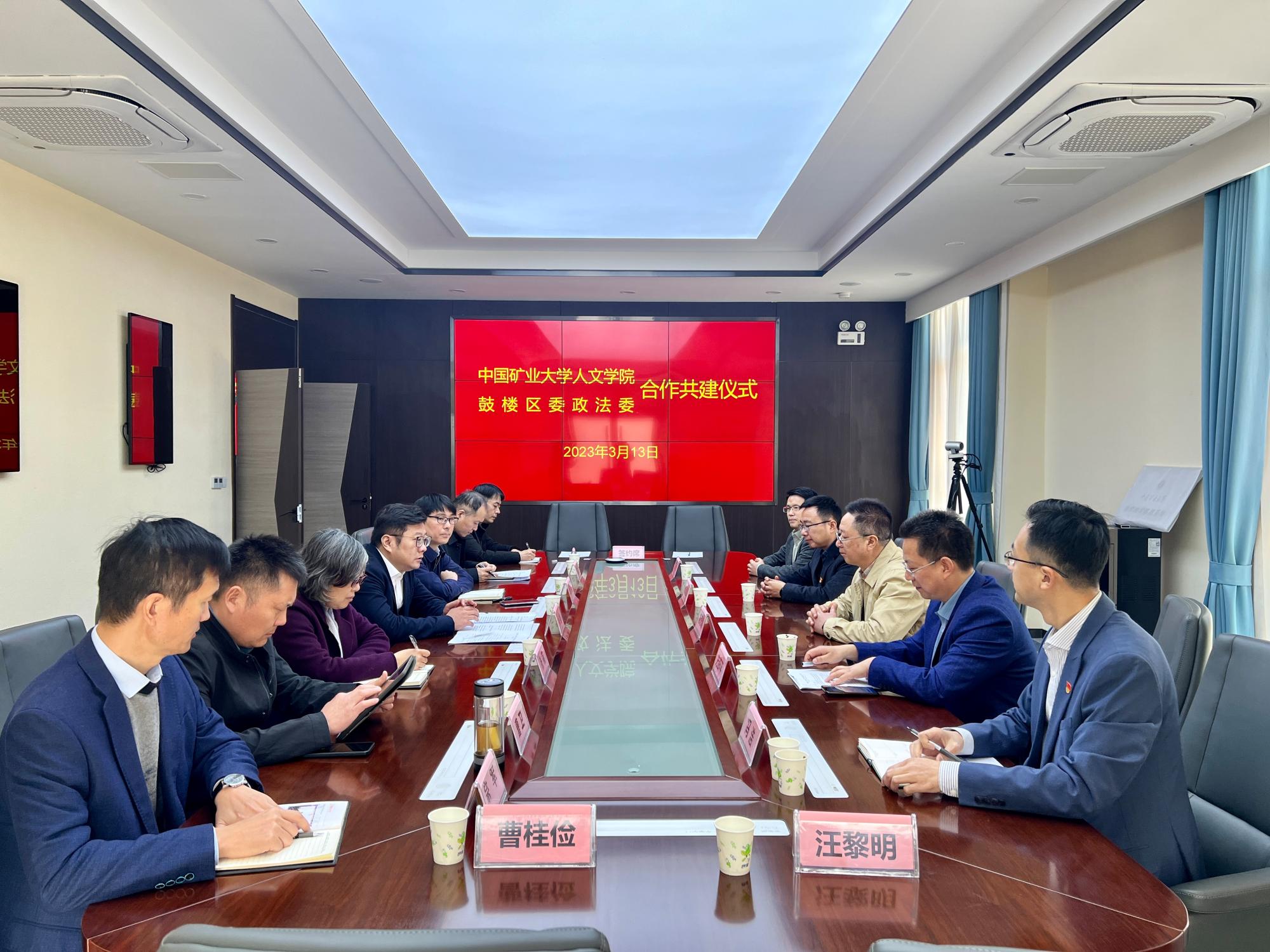 的基本情况及法学系的发展历程,并就与鼓楼区政法委开展党建与社会治理共建战略合作畅谈了几点想法。方跃平书记表示,开展校地合作是优势共享、事业共荣的有效方式,法学系党支部是首批全省党建工作样板支部培育建设单位、徐州市教育系统先进基层党组织,法学专业与地方政法委积极开展形式多样的合作共建活动,将进一步推动法学理论界与法学实务界的良性互动,把法律实务和高校教育紧密结合。期盼双方以此为契机,扎实的推动开展合作共建、推动资源共享、实现事业共赢,今后合作交流的道路越走越宽。