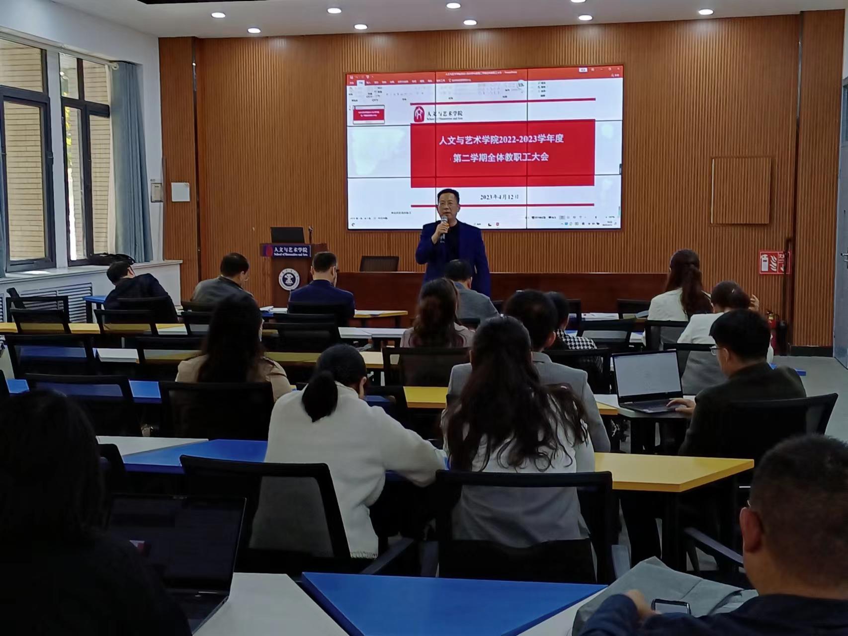 在文科楼A111会议室召开全体教职工大会。啪啪啦