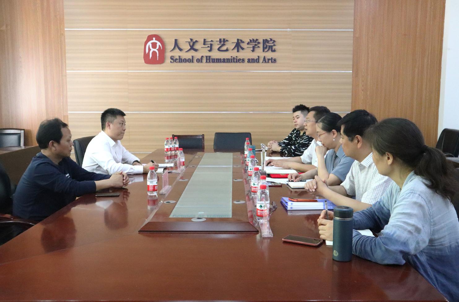 党委书记方跃平、党委副书记刘宁,新传系主任曹洪洋、美术系教授徐刚、美术系副教授马平、音乐系讲师董德参加交流座谈。