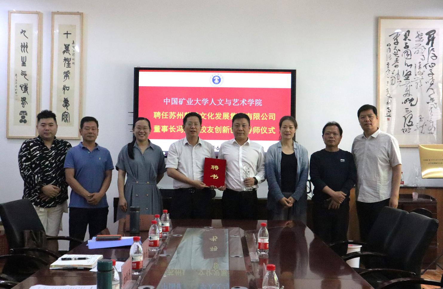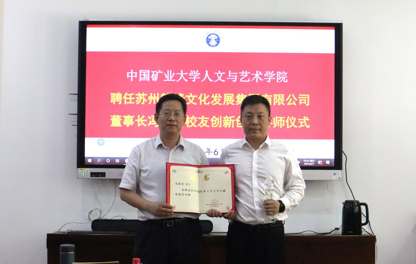 座谈交流会上,方跃平书记为冯亚东董事长颁发了学校创新创业导师聘书,冯亚东董事长和曹洪洋主任交换了苏州西山竹海艺术村运营策划项目签约文本;双方围绕推进教授工作室项目、太湖艺术岛项目、竹海艺术村项目等,进行深入沟通以及交流。