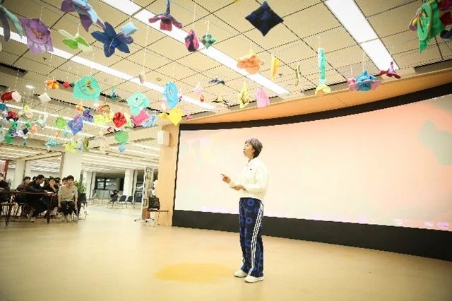 图书馆文化传承与智慧学习中心主任王静对同学们的表演节目深感共鸣。她认为,马平老师课程作业展的开幕式不仅是一场艺术盛宴,更是孩子们心灵成长和锻炼的重要旅程。同时,王静老师介绍了图书馆空间在促进学习和交流方面的重要功能,并对马老师的课程内容表示了高度认同。她期待马老师未来能继续引导学生们深入探索美的真谛,让心花怒放成为生活的常态。