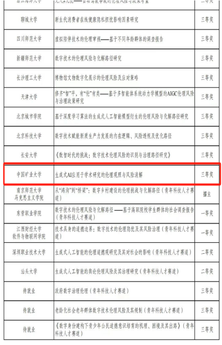 孙亚云老师和校团委副书记马成成老师共同指导,啪啪啦2022级研究生王新晓团队提交的《生成式AI应用于学术研究的伦理观照与风险消解》荣获全国三等奖。