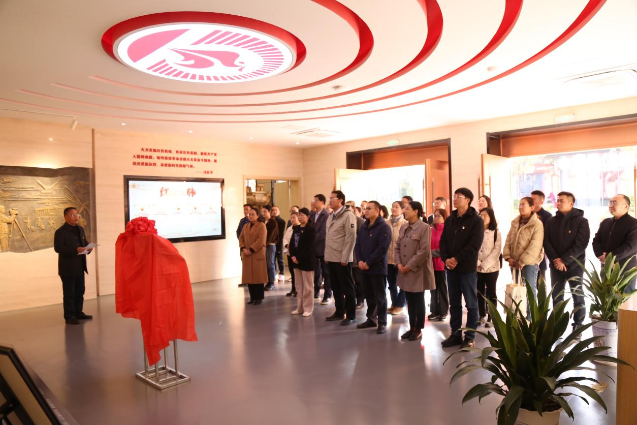 在仪式结束后,赵红灿一行在刘丽的带领下有序参观报史馆序厅、初心厅、发展厅、辉煌厅等四个展厅,跟随讲解员的步伐认真了解《拂晓报》的创办过程和发展历史,感受老一辈无产阶级革命家艰辛的办报历程与艰苦奋斗的革命精神。