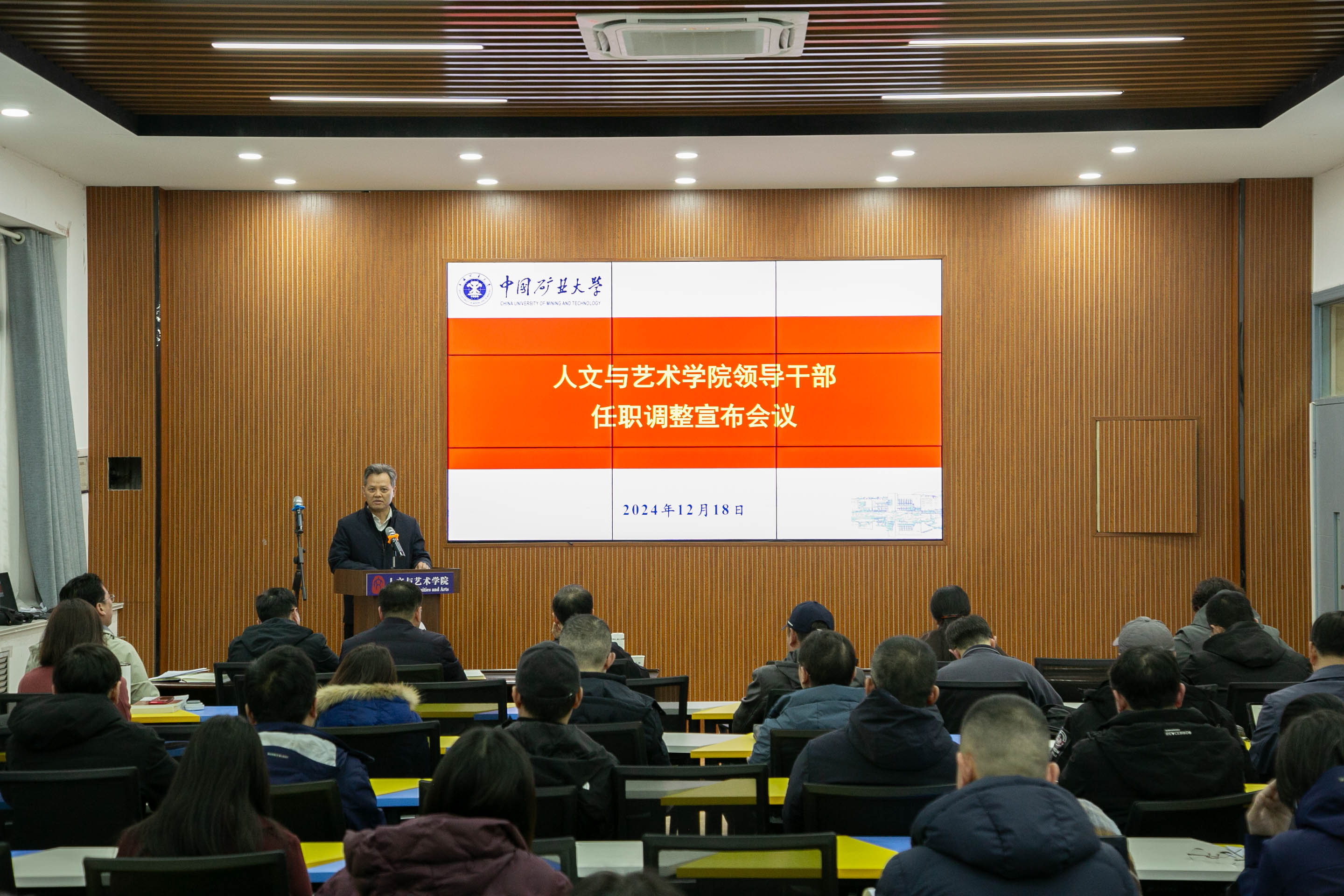 在文科楼A111会议室召开领导干部任职调整宣布会议。校党委副书记蔡世华、校党委组织部部长祁慧勇和啪啪啦