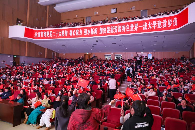 刘波致辞。她代表学校和赵宏伟校长向大家致以新年的问候和节日的祝福。她指出,2024是中华人民共和国成立75周年,也是学校推进“十四五”改革与事业发展的奋进之年。学校坚持党建引领,擦亮了全面从严治党的政治底色;持续深化改革,走出了一体推进教育科技人才事业发展的“矿大路径”;强化教育赋能,展现了服务新质生产力和高质量发展的“矿大担当”;以师生为中心,彰显了用心用情服务师生成长发展的“矿大温度”。一年来,全体矿大人以朝气蓬勃的奋进姿态、奋发有为的精神状态、敢于拼搏的创业精神,不断加快推进“双一流”建设,在中国式现代化建设新征程上努力书写“强国建设,教育何为”的矿大答卷。她表示,2025年是教育强国建设全面布局、高位推进之年,也是“十四五”规划收官之年、“十五五”规划谋划之年。站在新的历史起点上,学校要坚持以习近平新时代中国特色社会主义思想为指引,以教育之笔,描绘强国建设的壮丽画卷;以科技之力,铸就民族复兴的坚实基石;以人才之智,汇聚推动发展的强大动力,为实现强国建设的宏伟目标、民族复兴的伟大梦想作出新的更大贡献!