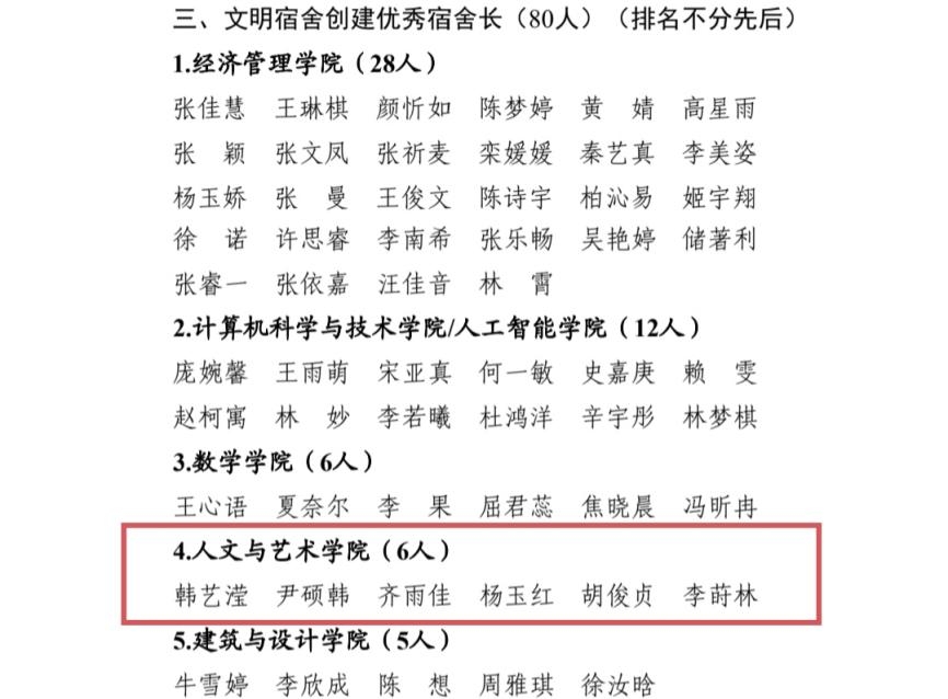将以此次表彰为契机,发挥优秀榜样的传帮带作用,激发同学们创建文明宿舍的积极性与主动性,进一步优化管理服务机制,持续打造整洁有序、友爱互助、积极向上的宿舍育人环境,助力人文学子成长成才。