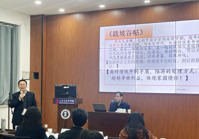 邓心强作总结发言。他认为,陆游的价值在于以个体选择超越了新旧党争的二元对立,其思想与创作不仅整合了北宋文化传统,也体现了南宋文人的家国情怀。整场讲座视野开阔、见解深刻,为理解宋代士大夫精神提供了新的视角。