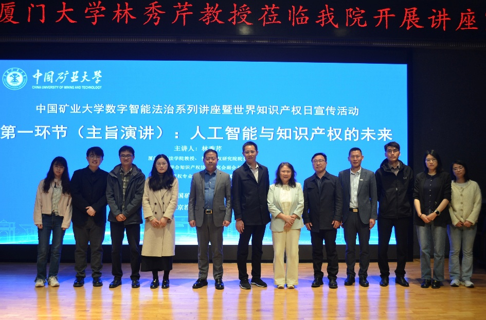 副院长汤道路,徐州知识产权法庭庭长李为帆,北京浩天(徐州)律师事务所主任夏建立、律师吴平方及法学系百余名师生参与讲座。