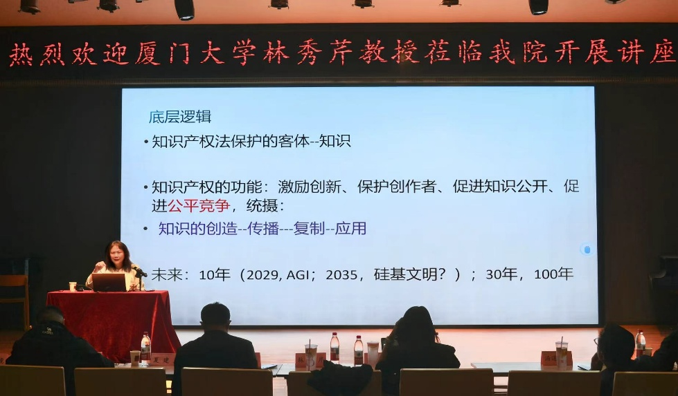 报告厅举行。厦门大学知识产权研究院教授林秀芹应邀作“人工智能与知识产权的未来”主题讲座。啪啪啦