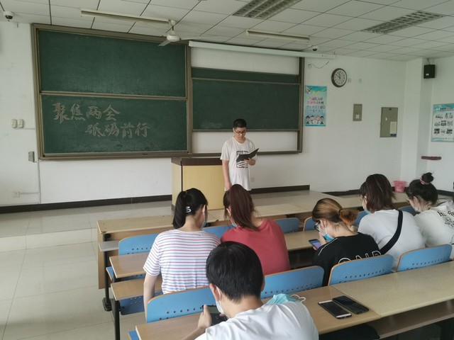 6月5日法学17-3班在博一A102与线上两种方式召开了“聚焦两会,砥砺前行”主题团日活动。本次活动由团支书李思汉同学主持,全体同学通过线上线下两种方式参与。