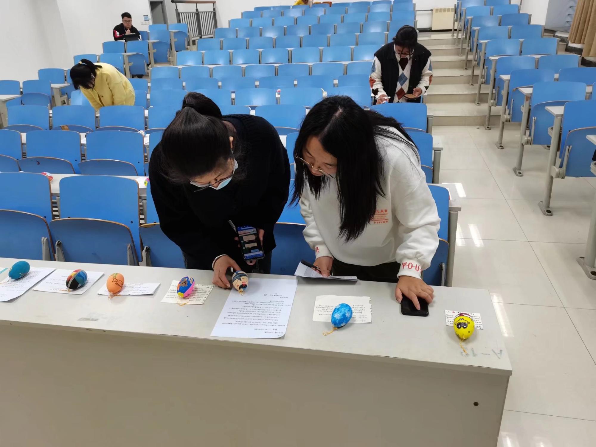 下午十六点十五分开始,参赛选手陆续来到教室上交作品,并附上创作思路及作品内涵等作品信息,为保证公平,不允许出现个人信息。随后,在每个评委对彩蛋进行欣赏与比较之后,依次对各个作品进行打分。每个彩蛋都由三个评委分别评分,并最终取平均值。最后,经过实践部对评分结果的整理统一,得出获奖结果。