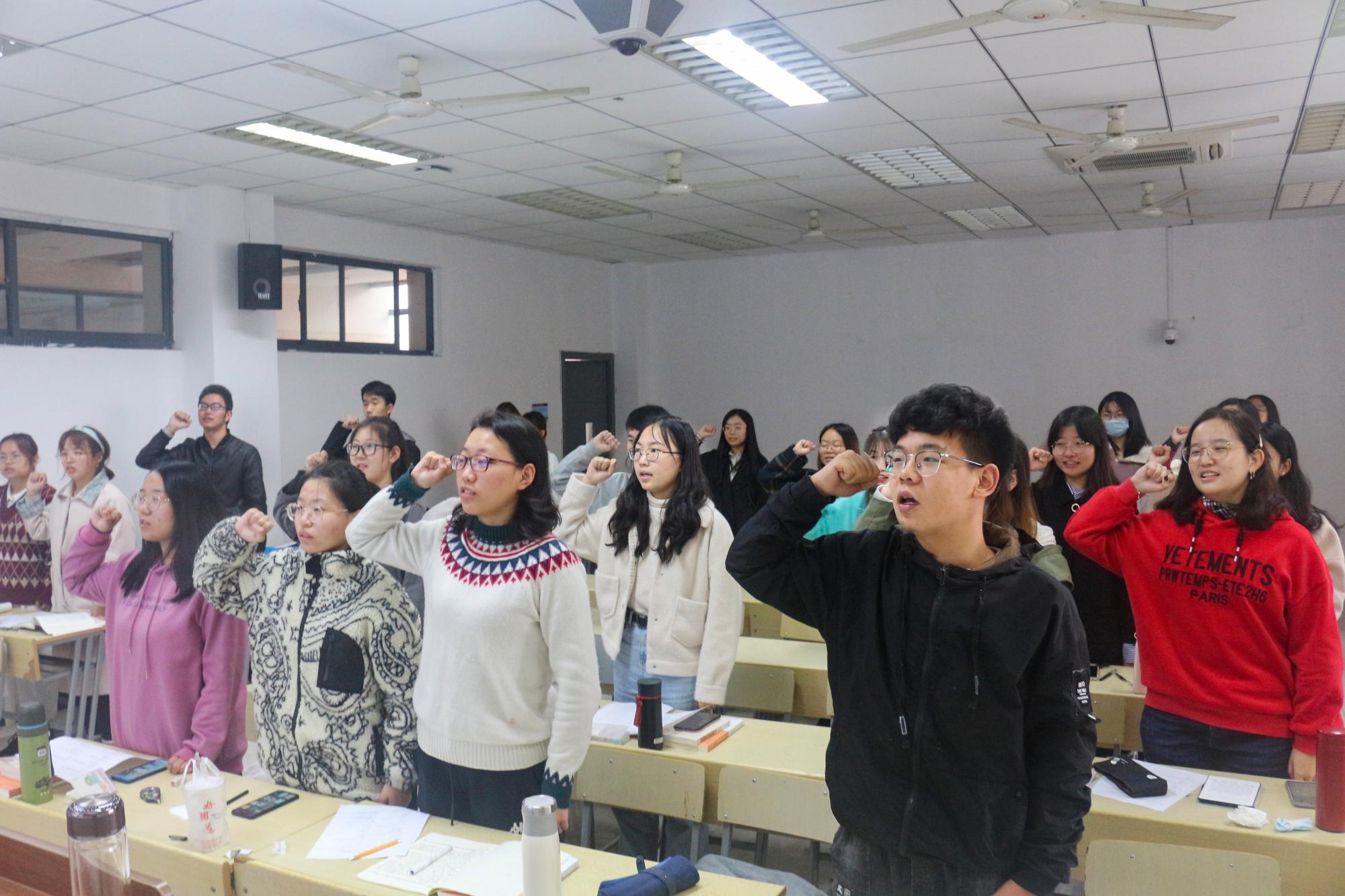 首先,刘振乾强调本次全会的重要历史意义,号召全体同学提高政治站位,共同学习十九届五中全会公报内容。秦晨昕介绍十九届五中全会期、议程等常识内容,刘振乾讲解公报要点,董耀文、任慧娇讲解“十四五”规划和2035远景目标规划建议。其次,全体同学进行全会知识问答题测试,巩固、加深对十九届五中全会公报的理解。然后,杨欣然,秦书琪作关于决胜全面建成小康社会感想的发言,她们说:“国家在不断凝聚人民的力量,不断谋划和推进中国之治。我们作为时代新青年,应当学习五中全会精神,争做爱国新青年,为决胜全面建成小康社会贡献出一份力。”接下来,高淮生教授讲话,他讲到:“现在读书要注重培养能力,不局限于一个专业的学习,才能在未来把自己融入社会,实现价值。”他还希望同学们主动关心政治,了解国家政策,更好地制定自己的人生规划,胸怀祖国,放眼世界。最后,同学们重温入团誓词,起立集体宣誓,牢记初心使命。活动结束后,高老师与全体同学合影留念。