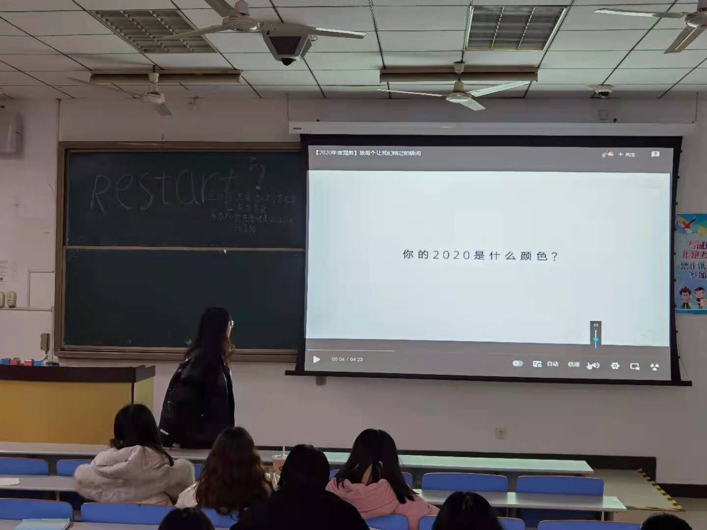 会议开始,团支部全体成员观看了2020年回顾视频,“2020年是什么颜色?”2020年是不平凡的一年,新冠疫情的爆发,高考的延迟……紧接着团支书王莘童向同学们提出了一个问题,“如果给你一个机会重启2020年,你愿意吗?”同学们在纸上写下了自己2020年最幸运的事与最后悔的事,回顾2020年的点点滴滴以及自己的心路历程,交流了彼此的看法以及解答了相互的的疑惑。