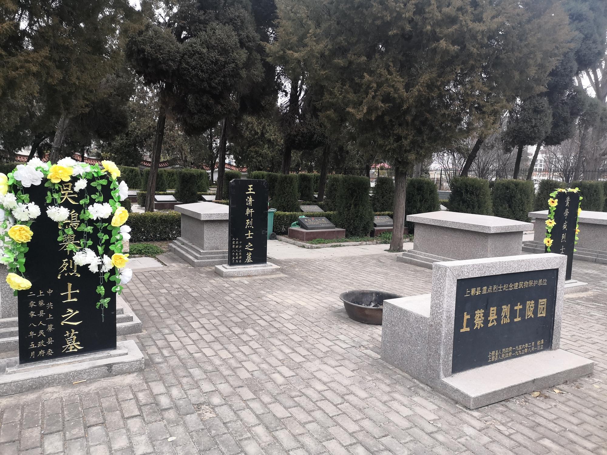 上蔡县烈士陵园始建于1957年,2006年投入250万元进行改建。改建后,陵园广场、烈士纪念壁、烈士事迹陈列室、烈士墓区区划分明。2009年改名为“英雄广场”。2011年县里又陆续投入144万元对其进行扩建和绿化。陵园内现有革命烈士墓160座,其中有名烈士墓19座,无名烈士墓141座。上蔡县烈士陵园是开展英雄主义和爱国主义的教育基地,也是开展群众性文化健身活动的优良场所。每年清明节前后,都会有党员、武警战士、学生、企事业单位工作人员到陵园参观扫墓,陵园全年接待参观群众约100万人次。