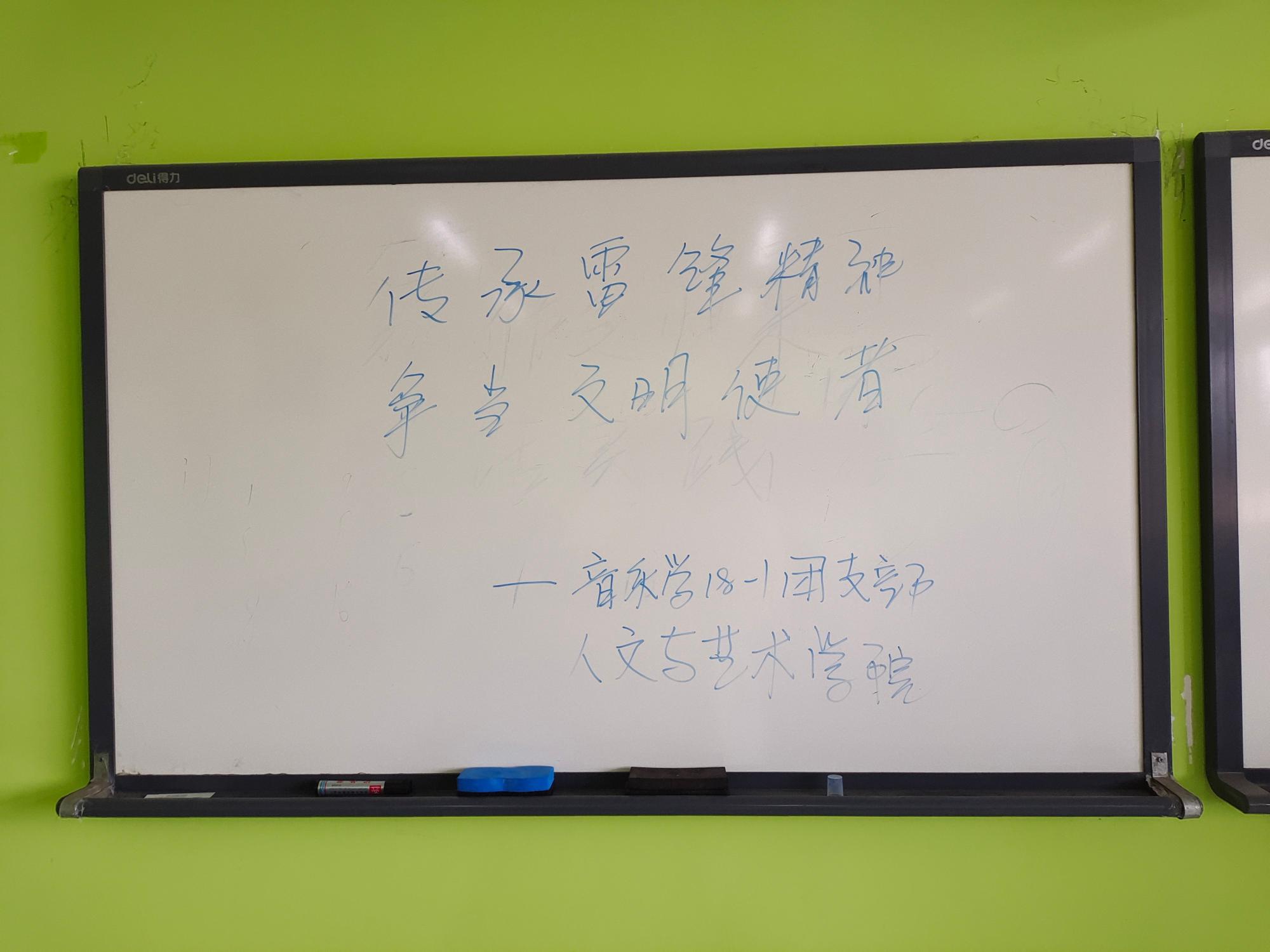 音乐学18-1班在博学楼5A105举行“传承雷锋精神,争当文明使者”主题班会。本次班会由组织委员臧捷含组织,团支书韦紫奡同学主持,班级全体成员参加。