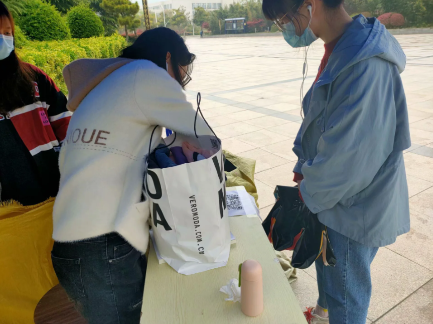 的青协志愿者首先与“飞蚂蚁”旧衣回收平台联系,熟悉回收流程。接着撰写活动策划,安排相应工作任务。与此同时,宣传部制作好活动需要的海报和宣传单。项目部的同学们提前准备好统一收集衣物的压缩袋、编织袋等。