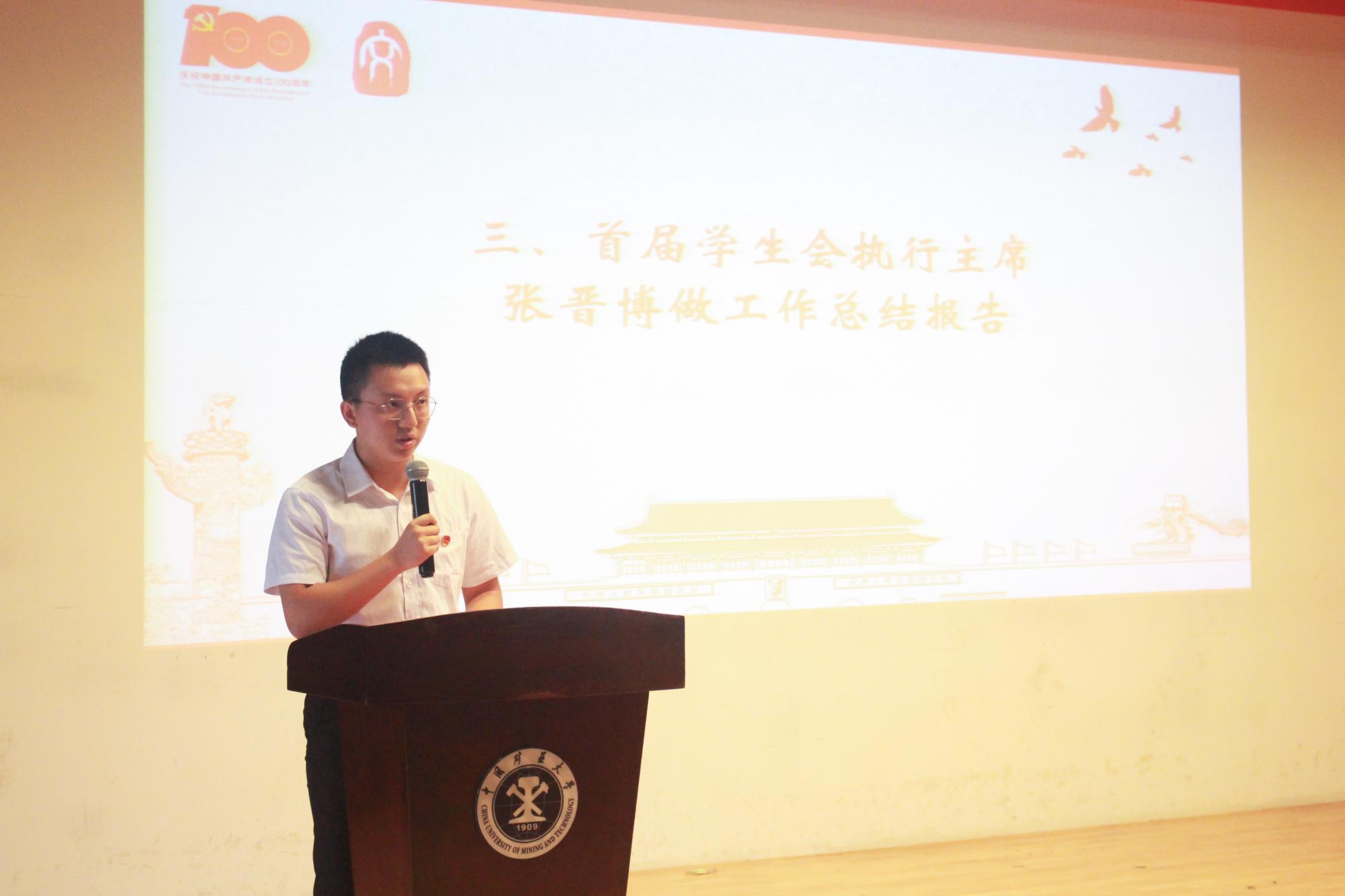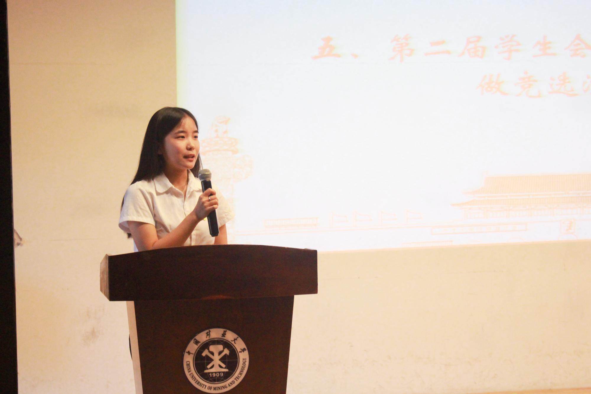 首届学生会执行主席张晋博代表学生会组织,对2020-2021年度的工作作出总结报告。张晋博同学从思想政治建设、组织制度改革、学生权益维护以及校园文化发展等方面分别予以阐释,并点明了学生会工作存在的不足。大会第四项,张芯语同学代表院学生代表大会筹备委员会,向与会代表宣读了《选举办法》,各代表经过充分讨论酝酿后,全票通过了该办法。大会第五项,院第二届学生会主席团成员候选人依次上台作竞职演说。范丽洁、卢秀强、马雅琪、王子栋、薛玉婷等五位同学从自我概述、工作展望等角度予以展示,并接受了领导老师及学生代表的提问。各代表通过不记名的方式填写选票,并由各代表团团长上台统一投入票箱。
