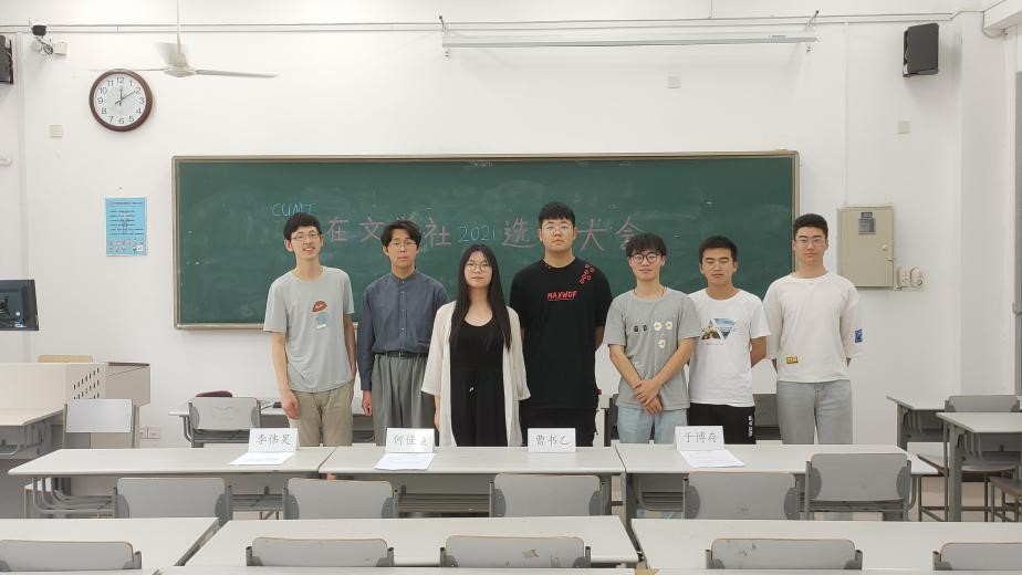 6月27日上午,存在文学社于文科楼B314教室举行换届选举大会,社长何佳燊担任主持,存在文学社第三十届管理委员会全体成员出席此次会议并担任面试官,全体面试人员共同参与此次大会。