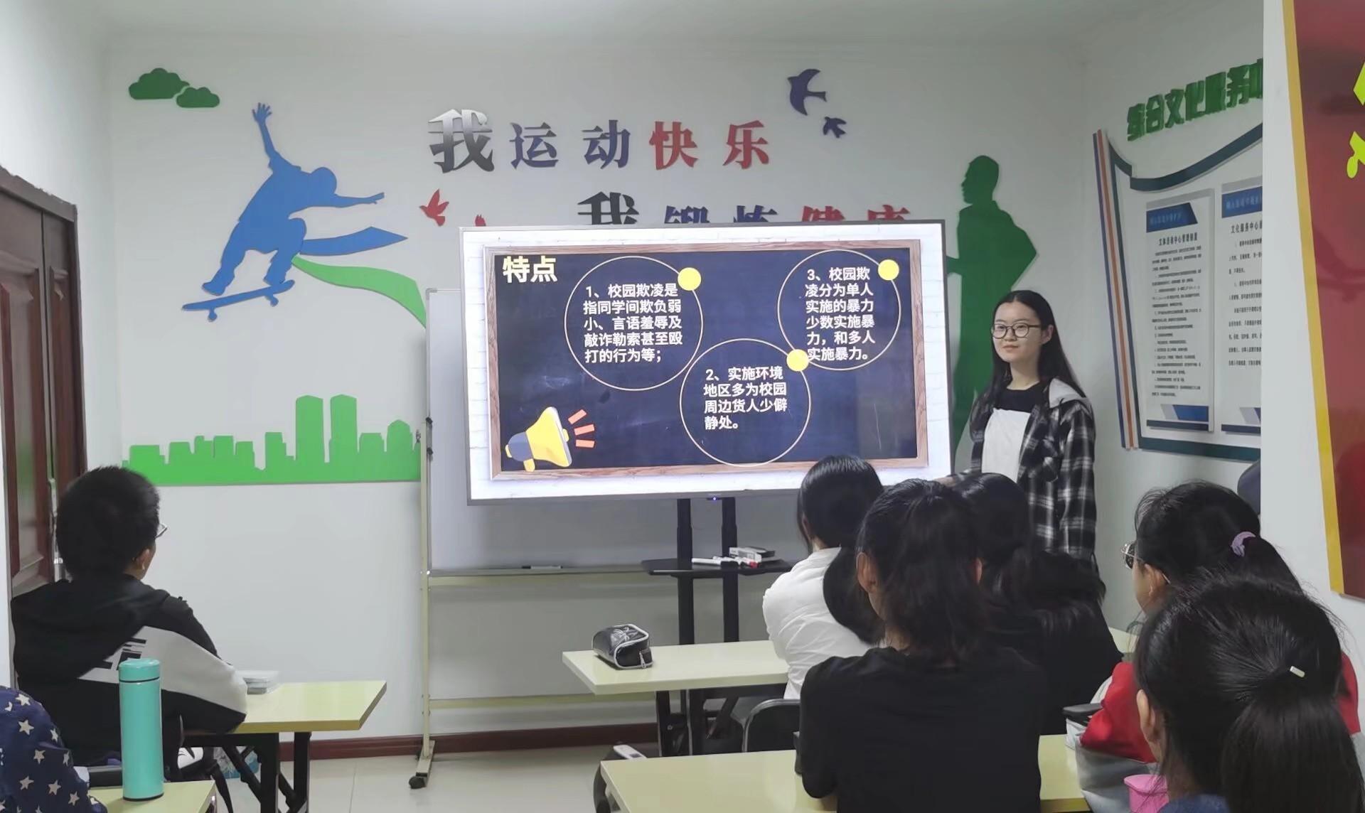 校园欺凌是发生在校园内外,学生之间,一方(个体或群体)蓄意或恶意通过肢体、语言及网络等手段实施欺负、侮辱,造成另一方(个体或群体)身体伤害、财产损失或精神损害等的行为。这种行为与我们所处的环境息息相关,很多青少年,年纪小,法律意识淡薄,又恰逢青春期,经常会成为校园欺凌的一员或成为被欺凌的对象。课上,实践成员们通过几个典型案例,让大家了解了校园欺凌,同时也向大家讲解了校园欺凌的解决方法。当受到欺凌时,最好不要害怕或哭泣,这会加剧欺辱者的欺辱行为。我们要勇敢、坚定而且明确地要求欺凌者停止他们的行为,同时,为了避开欺凌者最好和他人一起行动,及时向老师、家长及警察求助。当看见别的同学受到欺负时,也要向老师报告,不要视而不见,成为冷漠的旁观者。讲解过后,同学们表达了自己对校园欺凌的看法与认识。