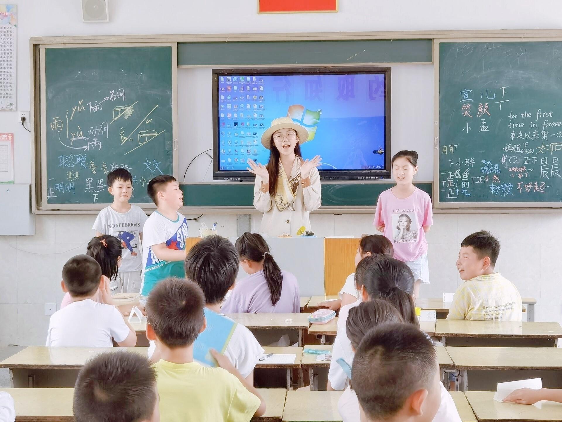 青年志愿者协会暑假社会实践团队“童享阳光,青春护航”的队员们在徐州市汉王镇铜山汉王小学开展第二天的授课活动。本地区活动由朱宣颖负责,与万笑颜同学共同授课。