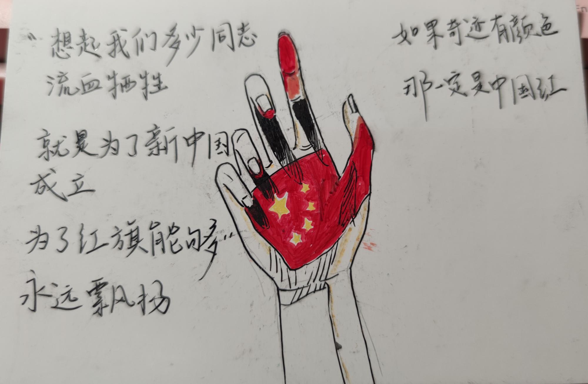 活动中后期,活动负责人组织志愿者有序开始“绘书签"活动,每名志愿者发放一张明信片。志愿者们积极配合活动开展,在空白的明信片上书写、绘制着建党建国的壮阔景象。活动期间不乏有亮眼的作品,如”碎雨跳珠乱入船”——描绘的是共产党刚刚建立的场景;“如果奇迹有颜色,那一定是中国红”——中国红是每一个中国人的信仰……矿大学子将自己的真挚情思藏于一笔一划之中,书写于一张张明信片之上,融于一抹抹亮眼的中国红之内,寄予我们伟大的党和繁荣富强的祖国。绘制完成后,明信片将被赠送给下淀社区的孩子们,帮助传递爱国真情,培养民族精神。