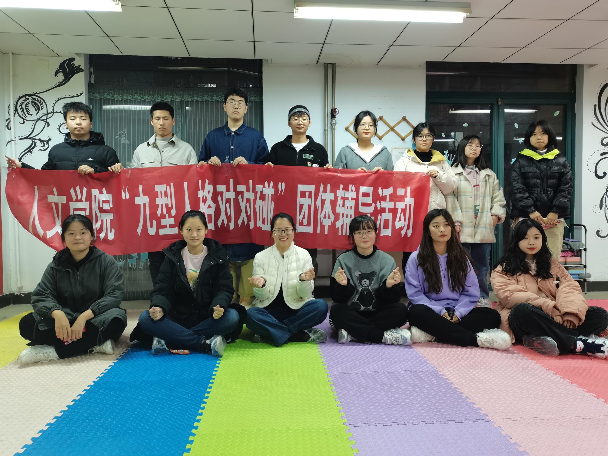 在竹苑三号楼舞蹈室开展“九型人格对对碰”活动,活动由李玉雪老师主导召开,大学生心理自助成员和各班心理委员踊跃参加。