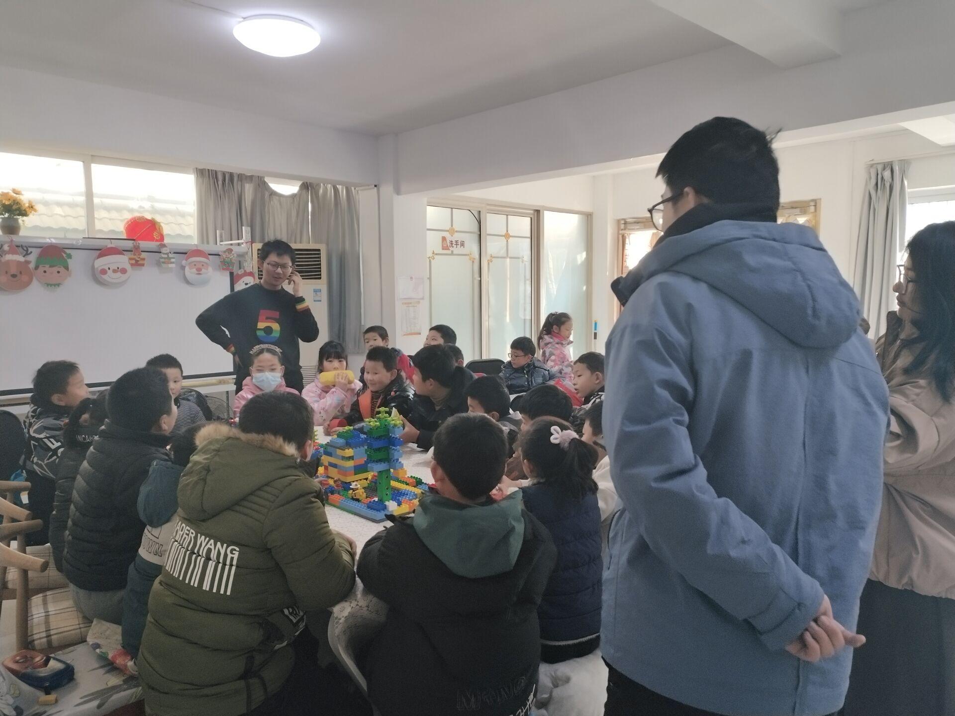 首先志愿者向小朋友们介绍了活动主题。然后志愿者引导小朋友们进入“一起来装圣诞树”环节。在志愿者的协助下,小朋友们在圣诞树上张贴了许多圣诞主题的装饰卡片,将圣诞树装饰得十分美观,并将写下自己圣诞心愿的愿望卡挂在圣诞树上。而后进入“圣诞节乐高主题拼搭活动环节”,这一环节十分考验小朋友们的动手能力和空间思维,志愿者们也尽量鼓励孩子们独立完成乐高积木的拼搭。接着是“爸爸妈妈的圣诞礼物”环节,志愿者们组织小朋友们为爸爸妈妈画一幅精美的图画,向爸爸妈妈送去祝福,表达自己的感恩之情。之后,志愿者们又组织进行“圣诞老人实现心愿”环节,小朋友们互相赠送礼物,扮演彼此的圣诞老人,实现了对方的心愿。最后,志愿者与孩子们合影留念,将此次趣味小课堂那美好的瞬间定格。