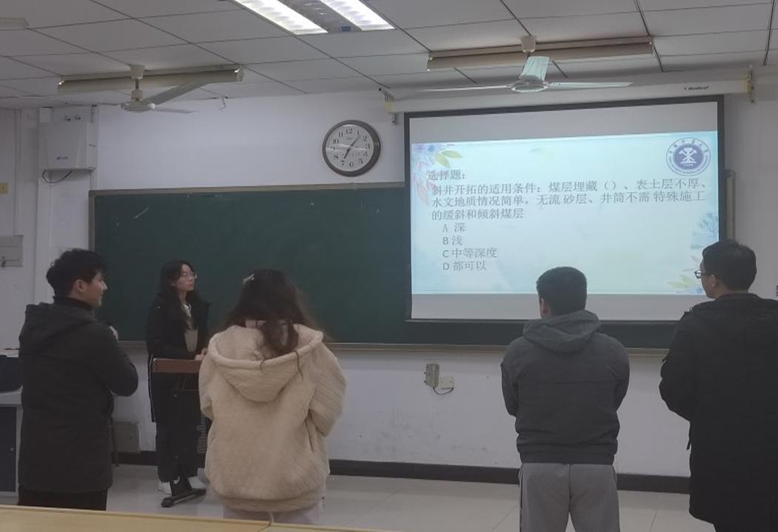 第六届煤炭知识竞赛决赛在博学楼四C308进行。在赛场上同学们斗志昂扬,激情澎湃,面对一道道难题越战越勇,毫不退缩。