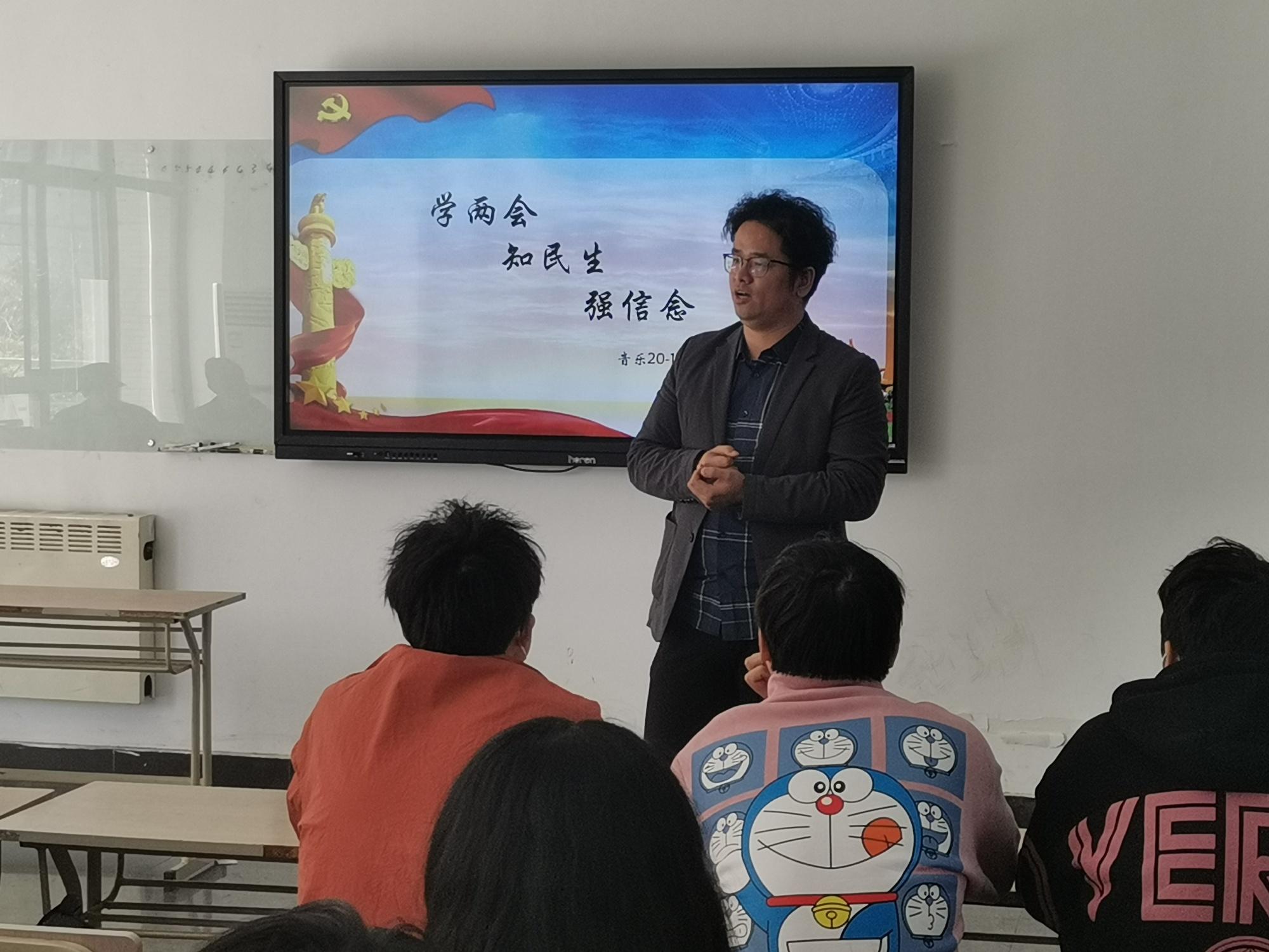 在班会上,部分同学举手发言,就“我眼中的两会”展开研讨。刘振老师提出,全国两会,是有关我国政治生活和社会发展的一件大事,也是国际各方观察中国政策走向的窗口。各与会代表的重要议案和报告,涵盖治国理政的方方面面,充分体现了同代表委员共商国是、汇聚民意、集中民智的民主议政过程,也是统一思想、明确方向、凝聚力量的重要过程。从人民中来、到人民中去、为人民造福,正是全过程人民民主的核心要义。通过关注两会明确国家发展趋势、了解民众关注的焦点,能够进一步开阔我们的眼界。这种前沿观察式的社会认知形式,也是当今高校学生思想政治教育的重要一环。