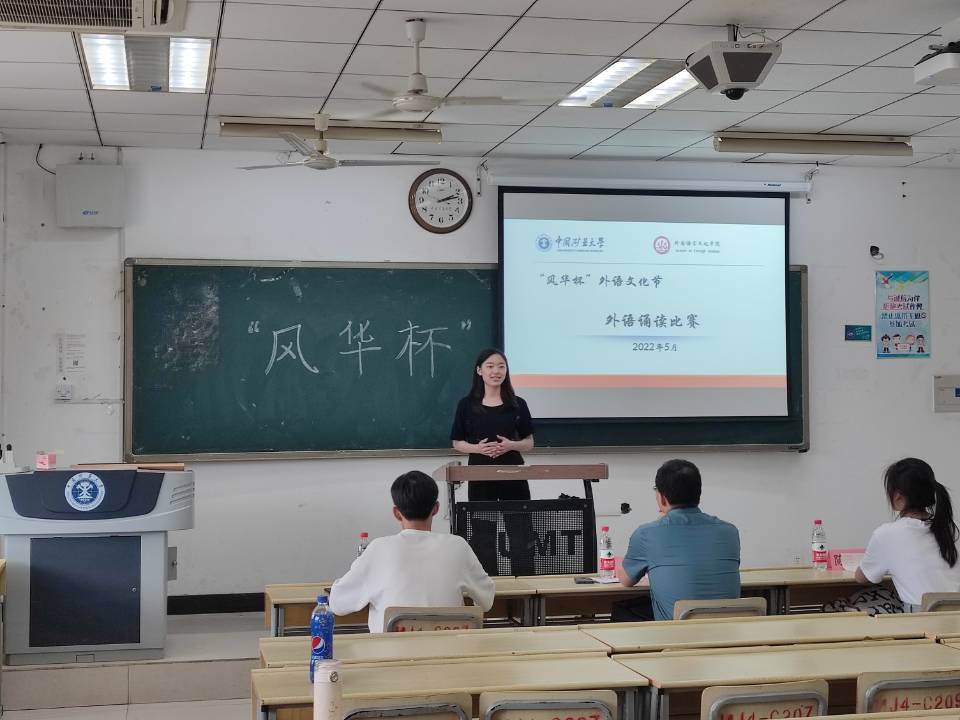 官方账号进行宣传。同学们通过扫描宣传海报上二维码的方式加入活动群内报名参赛。5月25日下午14至17时,比赛正式于文科楼B508举行。参赛选手们用英语或德语背诵一篇300词左右的作品,其中包括名作节选、名人演讲、红色经典等。最终,评委们依据给定的评分标准,对参赛选手的表现进行评分,评选出前30%的获奖选手。