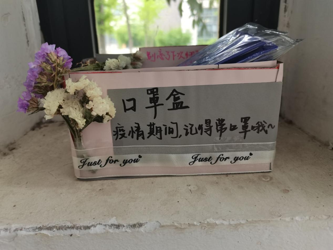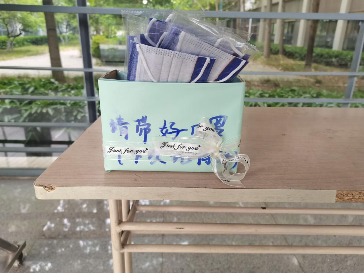 活动结束后,主办方将收集的优秀作品投放在公教区内,并在其周围写明“如有急用,请取之,如下次再遇,请放入新的口罩”的提示,为急需口罩的同学提供了便利。