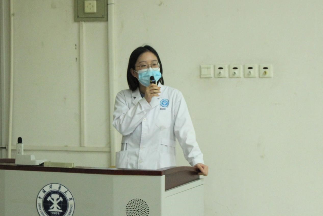 在本次培训中,刘婷婷老师以在生活中遇见突发情况的具体情境引入,明确了应急救援知识技能对挽救自己及他人生命的重要作用,随后,结合徐医附院急诊医学科主任赵宁军的视频,带领大家学习心肺复苏和AED全自动除颤仪的基本知识与技能。她梳理了判断意识状态、拨打120与寻找AED仪、进行胸外按压、清除口腔异物、进行人工呼吸等基本操作流程,对颈动脉位置、按压方法、仰头举颏法等重要、复杂内容进行了详细讲解与演示,并在视频放映结束后,引导大家对基本流程进行回忆与复习。