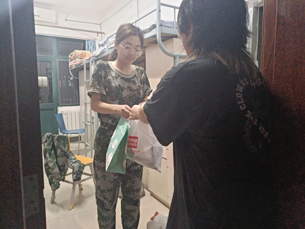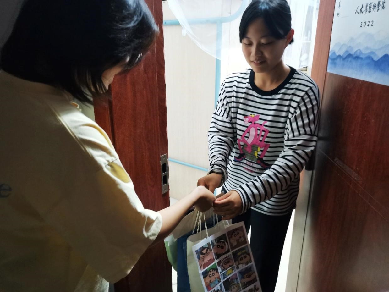 礼物准备完毕后,志愿者们来到新生宿舍,送上自己亲手准备的开学礼物,以真诚收获了一张又一张明媚的笑颜。新生们查看并互相分享礼物,在开学之初感受到成倍的惊喜与情谊,在背井离乡、孑然一身之时体会到的呵护与关心,内心充满了对大学生活的向往和信心,在追梦路上更好地笃定了自己的意志。