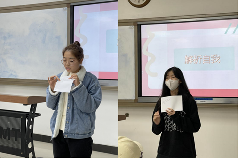 大学生心理自助中心心灵辅导部成员冉亦嘉和姚明霜共同主持。
