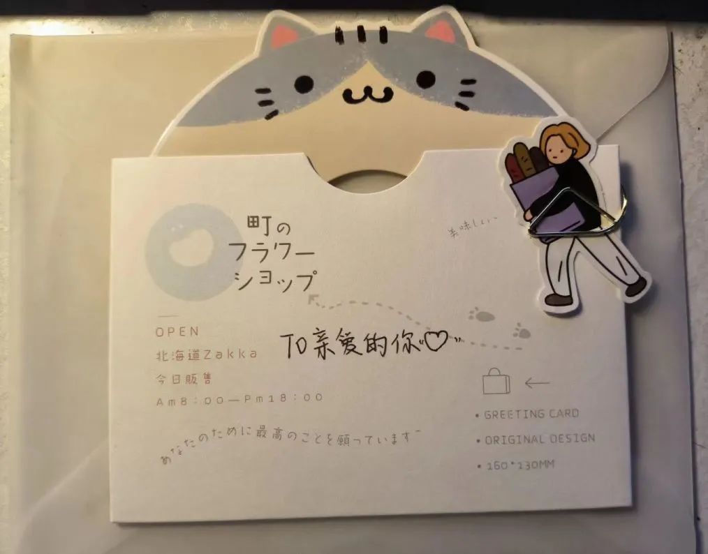 志愿者送上贺卡与礼品
