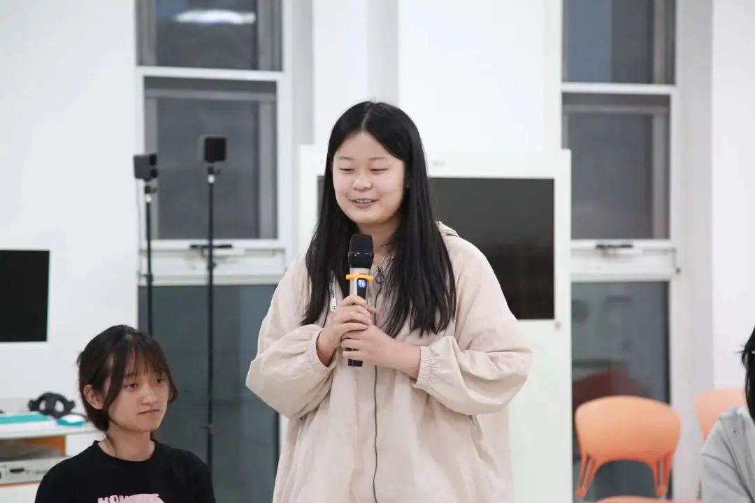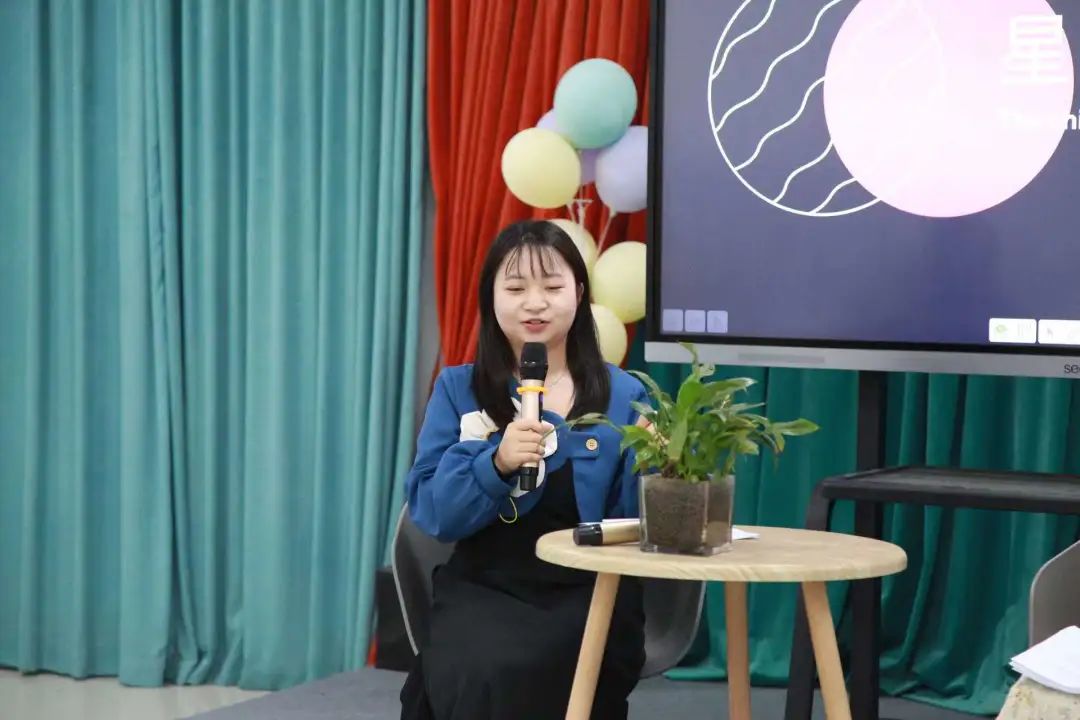 吴传丹回顾了她的蜕变与成长。刚入学的她慢热、不开朗,在自卑与焦虑的围城中封闭自己。幸运的是,她加入了一个社团,遇到了善解人意的学姐,这给予她鼓励与希望,指引她找到了自己的节奏。她认为大家无需陷入精神内耗,要勇敢去尝试自己想做的事情。